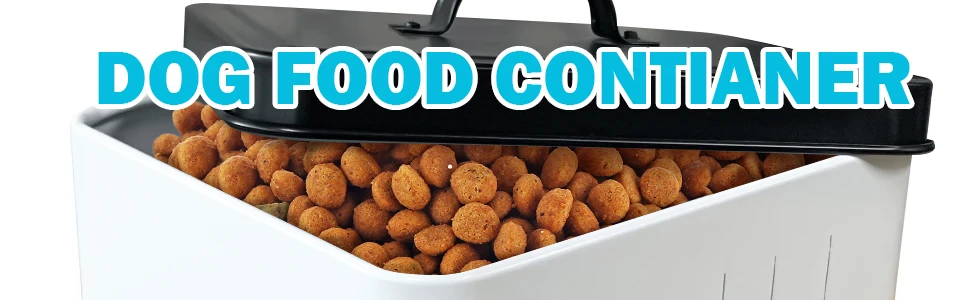White Farmhouse Dog Food Container with black Lid Food Storage Container with Serving Scoop