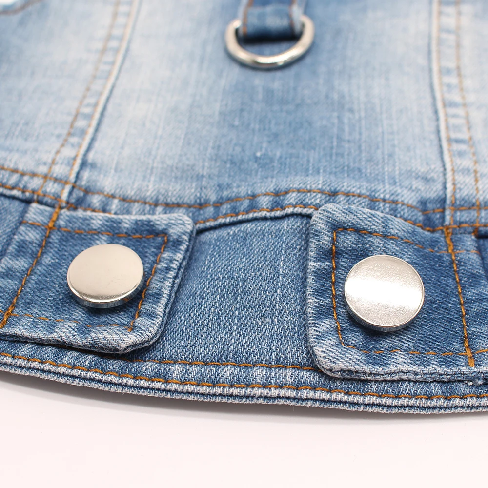 2024 New Thin Pet Dog Jeans Jacket Puppy Denim Clothes with Dog Leash Traction Buckle Cool Harness Vest for Small Medium Dogs
