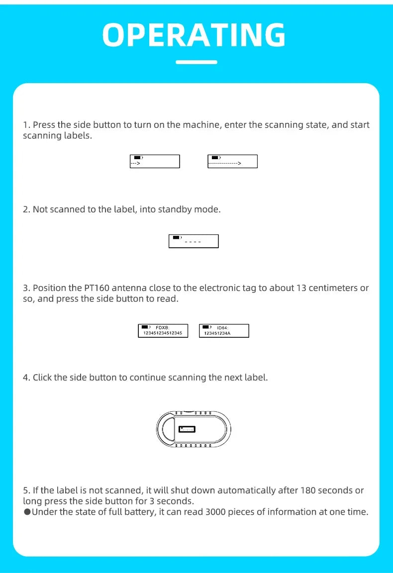 5YOA Pet Scanner OLED Display ISO11784/5 Animal Pet ID Reader Chip Transponder USB RFID Handheld Microchip Scanner for animals