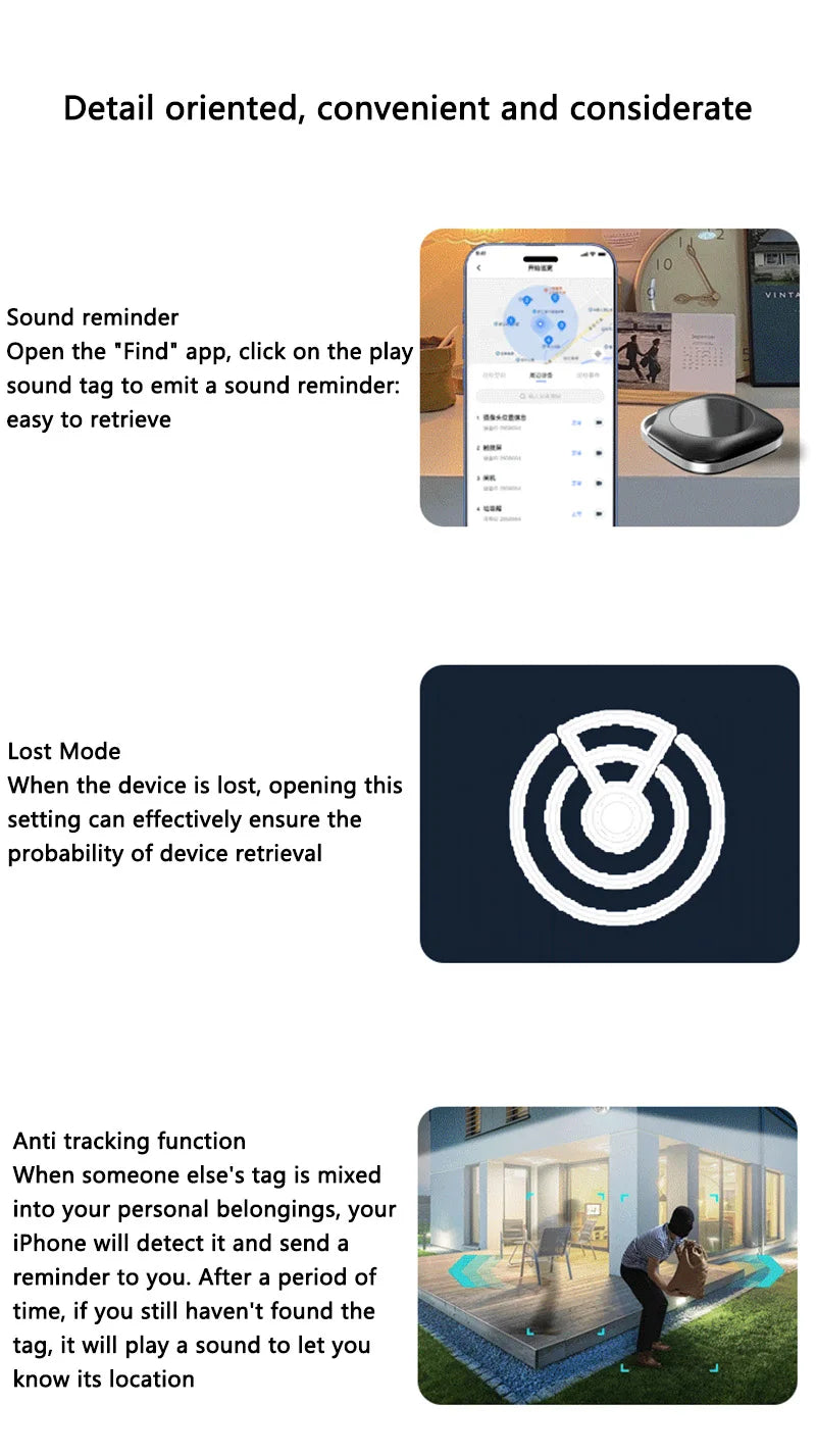 3) Anti-tracking function: When someone else's tag is mixed into your personal belongings, your iPhone will detect it and send a reminder to you. After a while, if you still haven't found the tag, it will play a sound to let you know its location.