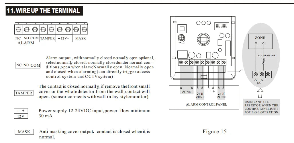 This wired microwave pir motion sensor can not work alone, it works with all home alarm host which has wired port.