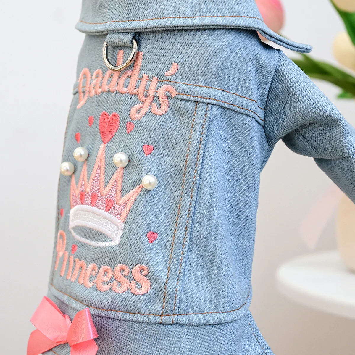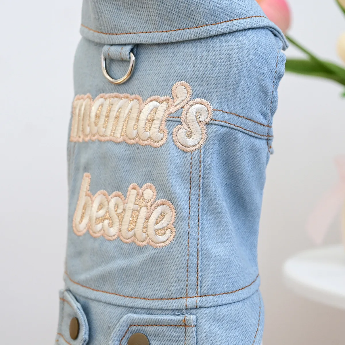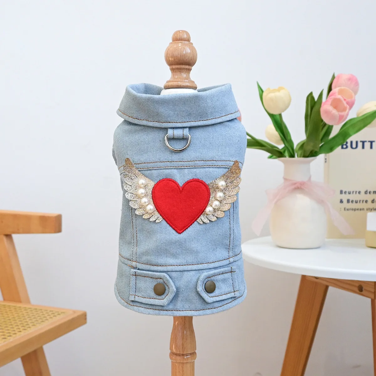 Denim Puppy Jacket For Chihuahua Yorkie Adjustable Lightweight Coat, Breathable Dog Clothes With Snap Closure