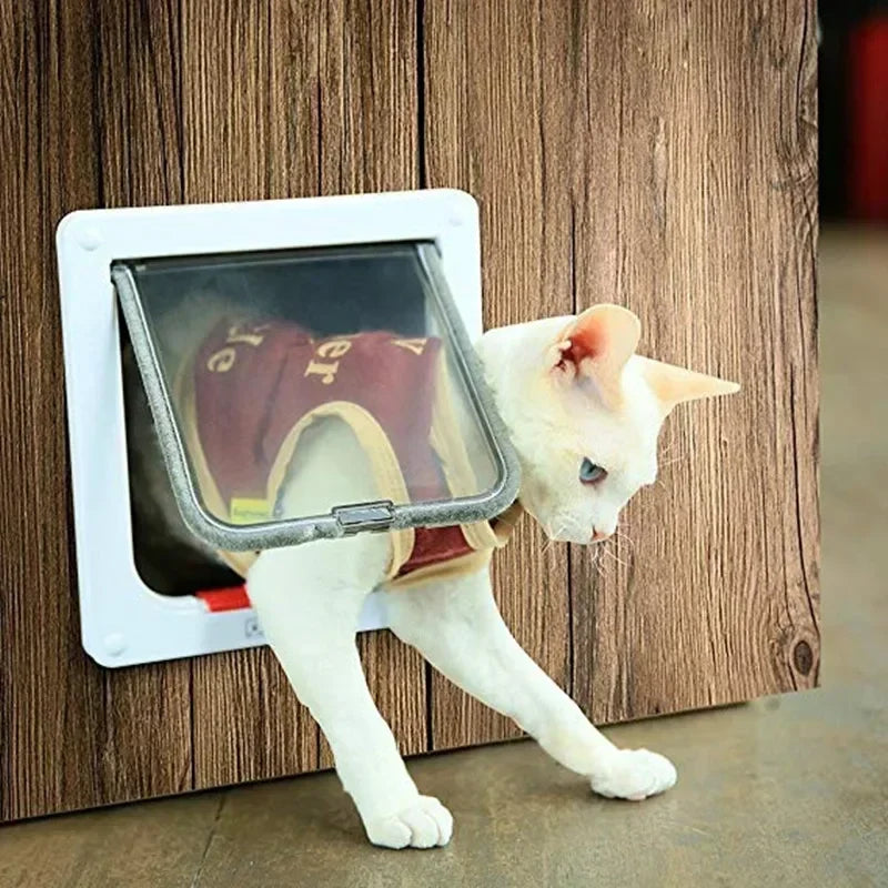 Dog Cat Flap Door with 4 Way Security Lock Flap Door for Dog Cats Kitten ABS Plastic Small Pet Gate Door Kit Cat Dogs Flap Doors