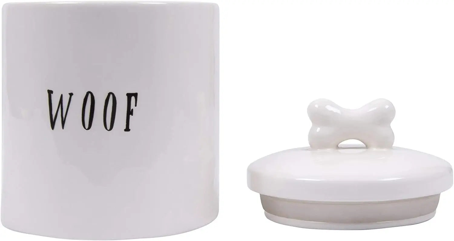 Dog TreatJar with Bone Handle on Lid Jar Large Ceramic Airtight Canister Rustic Farmhouse Pet Food Storage Container