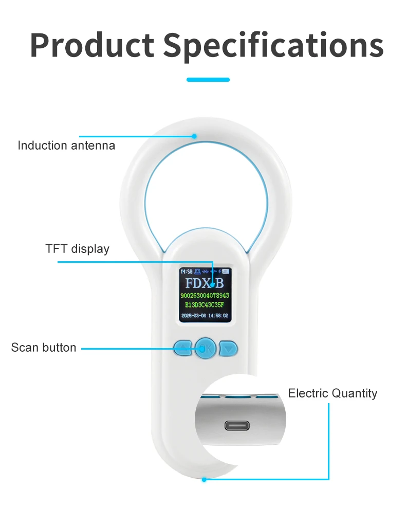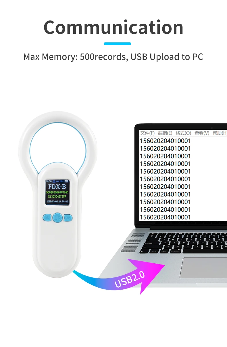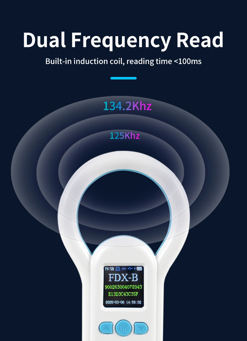 Handheld 134.2KHz 125kHz Animal RFID Reader Pet Cat Dog Microchip Scanner FDX-B Glass Chip USB/Bluetooth Tag Reader