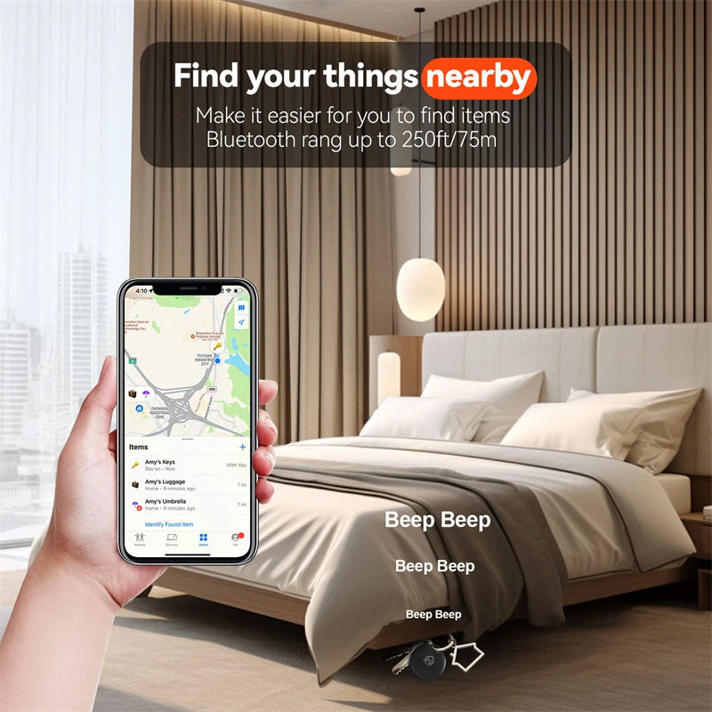 【Find Nearby with Built-in Speaker】The tracker includes a built-in speaker that allows you to easily locate your belongings within a Bluetooth range of up to 164 feet. Simply use the Find My app on your Apple device to trigger a sound alert from the tag, guiding you directly to your item's location.