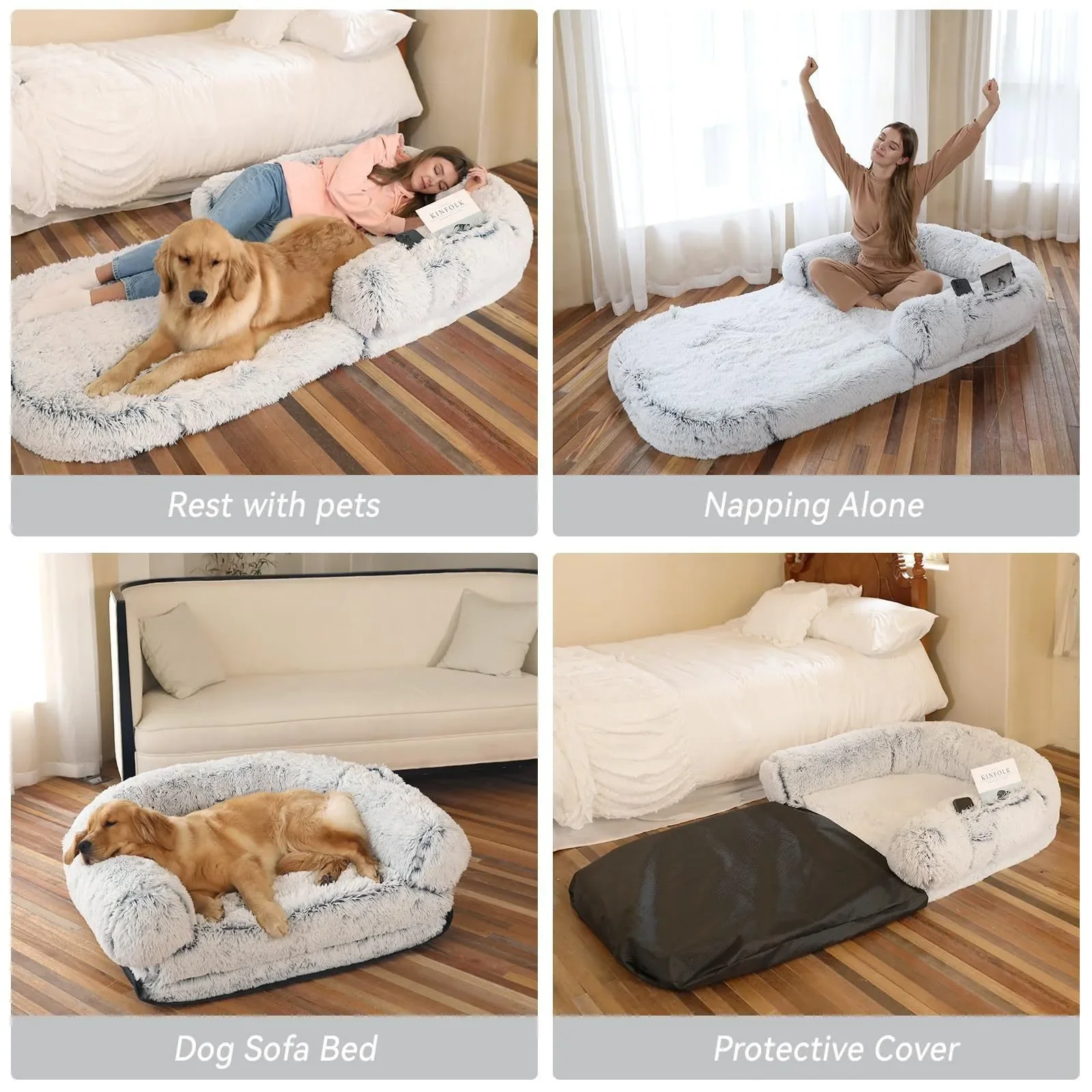 Human Pet Sofa Removable Washable Convenient Unfolding Large Dog Bed Plush Human Pet Sharing Kennel Soft Dog Cushion