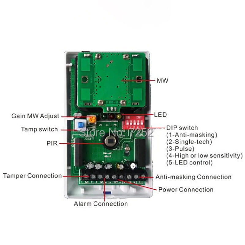 5. Microwave anti-masking, which can detect the attempt of blocking microwave or PIR channel up to 20cm.