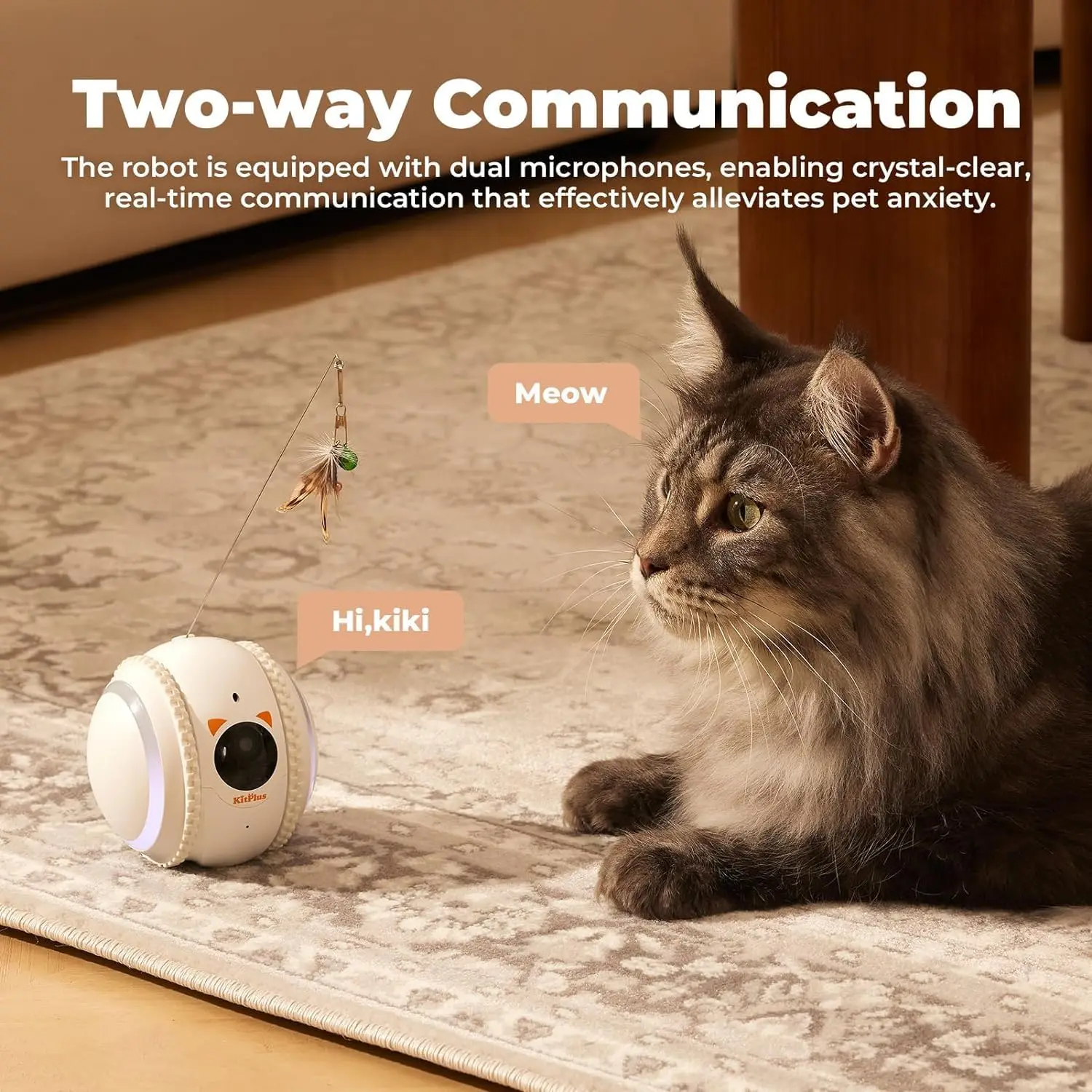 Two-way Video Cat Camera: The KITPLUS cat camera with phone app is equipped with real-time two-way communication, providing clear sound, stable signals, and no delays. Even when you're on the go, you can communicate with your cats at any time, keeping an eye on their well-being and alleviating any separation anxiety they may experience.