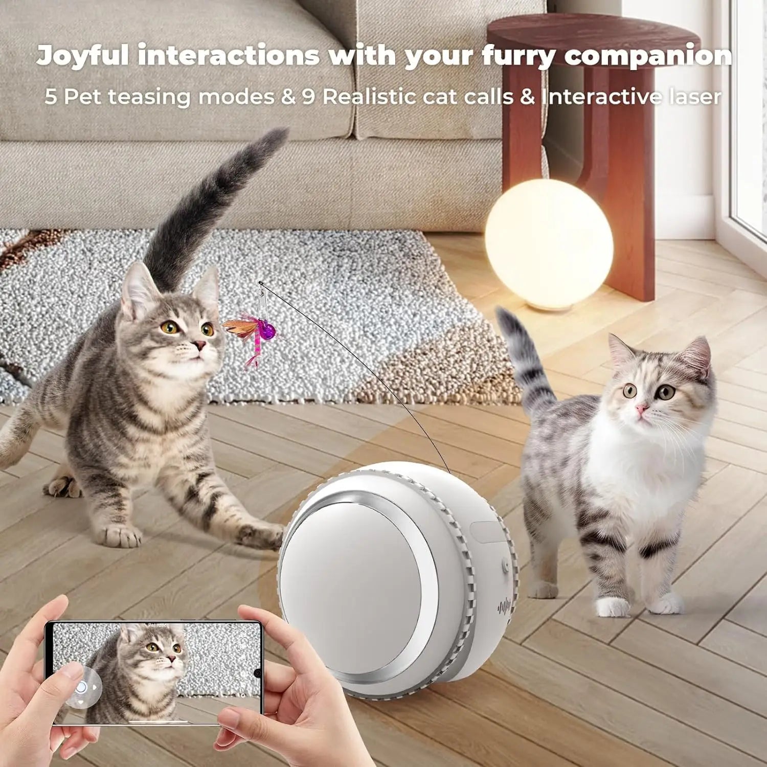 APP Control: KITPLUS cat cam provides a seamless app control experience with no delays, enabling you to effortlessly maneuver the cat camera robot and engage with your cats from anywhere in the world using your smartphone. And you can use the cat camera's photo-taking and video recording features to capture and preserve beautiful moments.