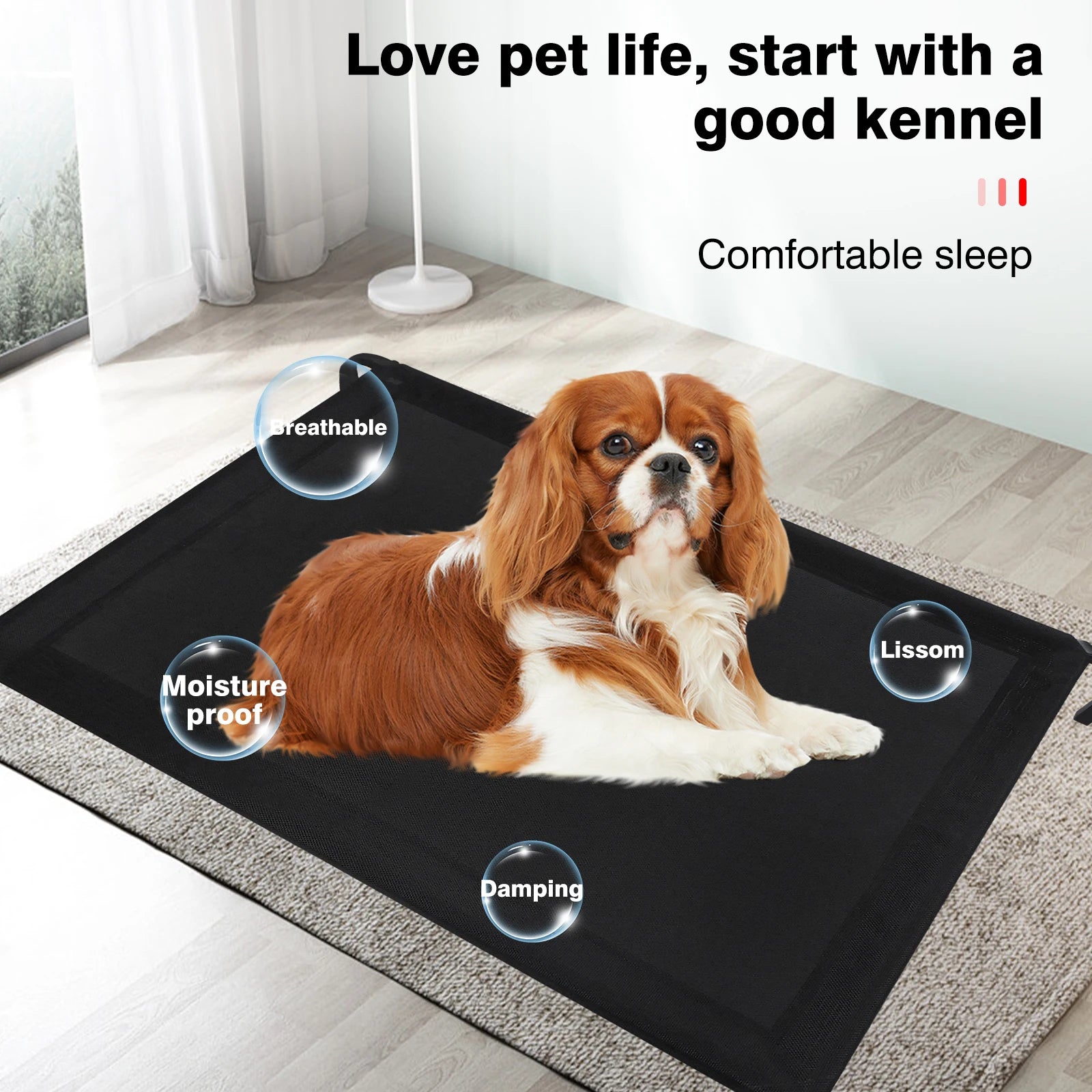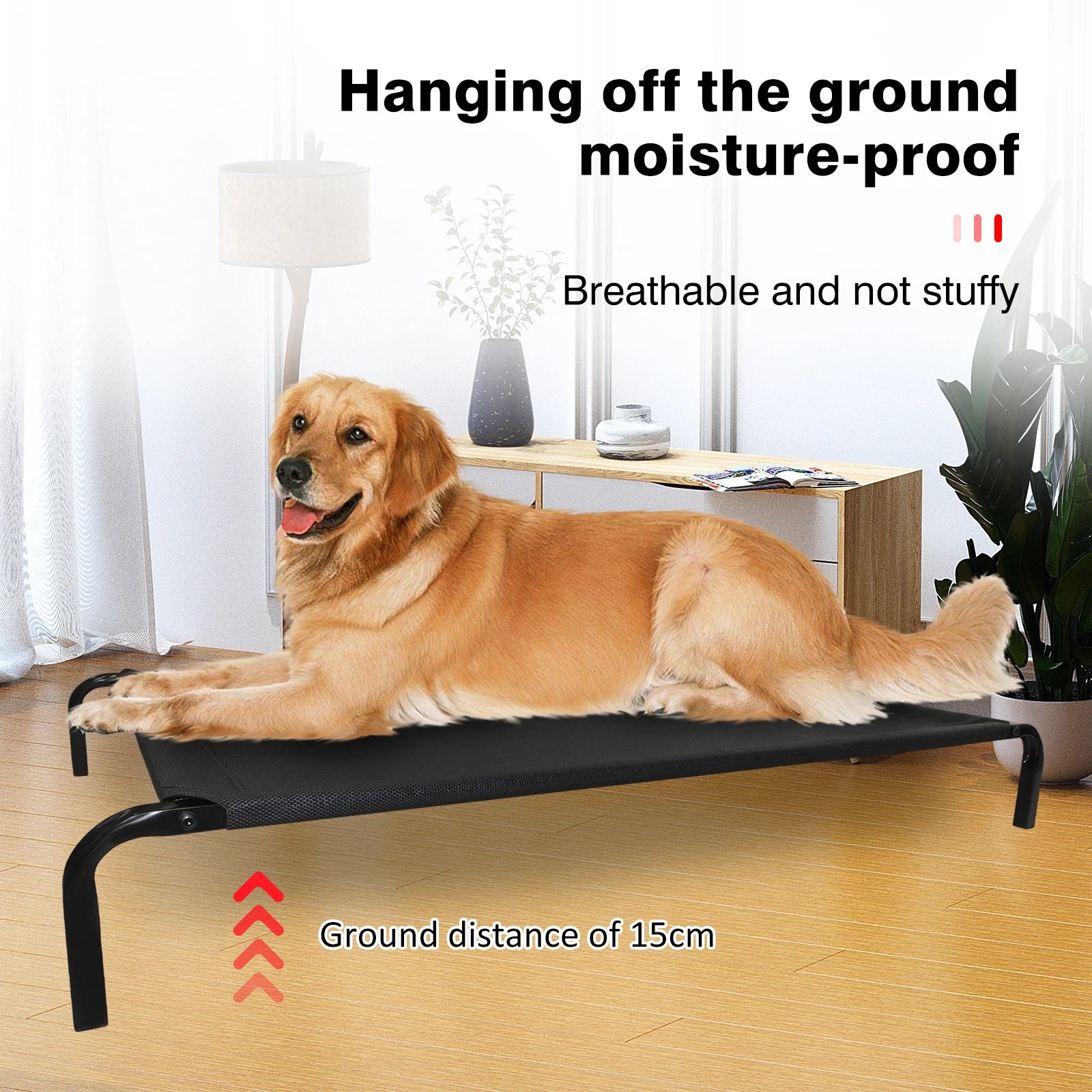 Elevated Pet Bed raised 15cm off the ground allows air to flow on all sides, cooling your dog. Use as crate mat to allow ventilation and keep your dog above the cold ground. Great for puppies still learning toilet training because it is easily washable in case of accidents.