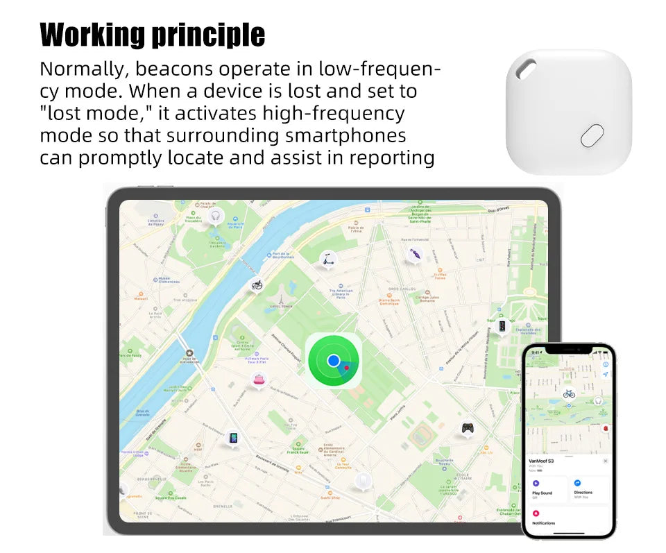 🔔Find Far Away: When outside of Bluetooth range, The location of the locator will only be updated when the locator detects an Apple device nearby.Then use the Find My app to view your 'Item Locator's most recent location on a map.