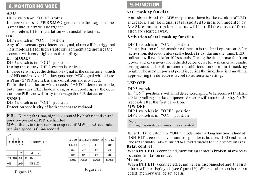 7.MW anti-masking technology, can detect the attempt of blocking MW or PIR channel.