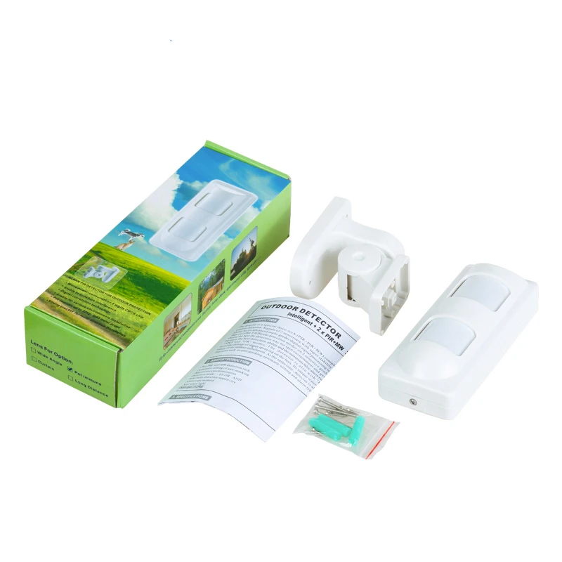 There are 3 lens for option: Pet Immune/Wide Angle/Curtain. Pet friendly Lens enable pet ( like dog, cat below 25kg) pass the protected zone without trigger alarm. Curtain Lens offer wider range of infrared line protection, like a curtain. Below picture can show detection range difference: