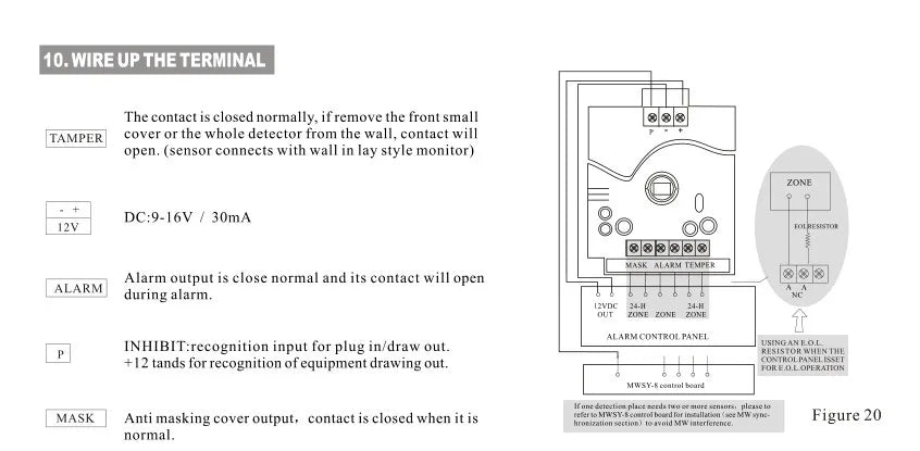 Note: This sensor can not work alone, it can connect to all alarm system which supports wired zones.