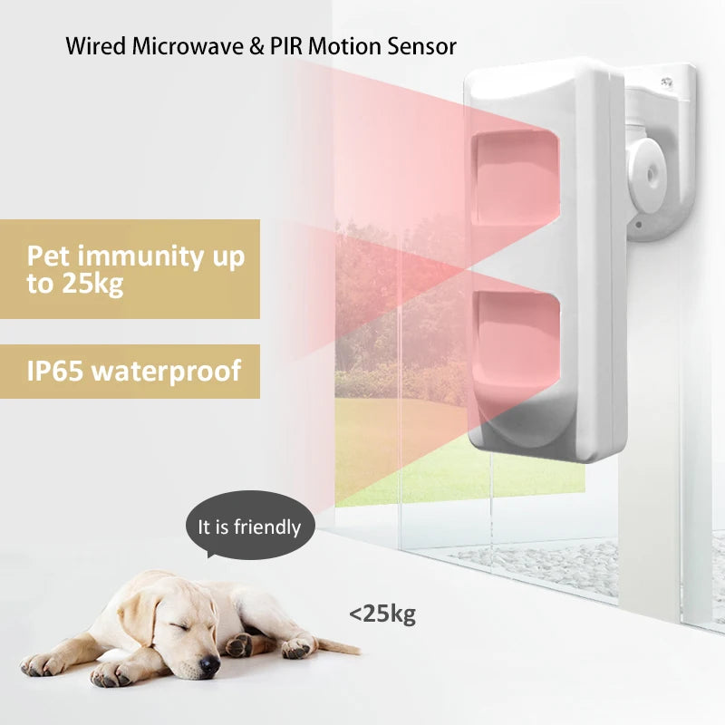 Outdoor Waterproof IP65 Pet Immune Wired Dual MW+PIR Motion Sensor Infrared Passive Detector for Smart Home Security Protection