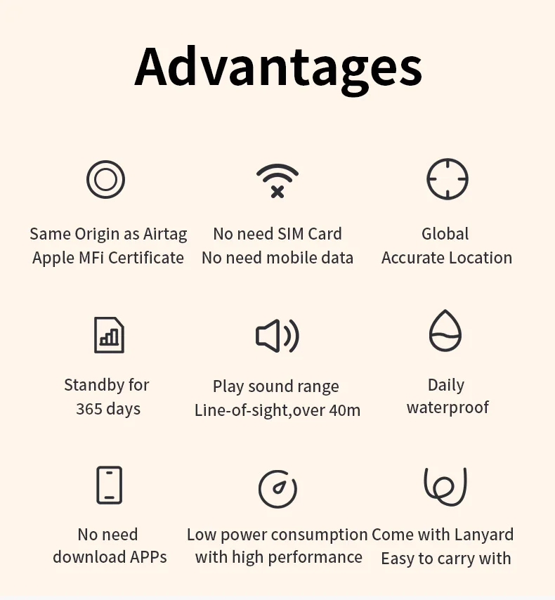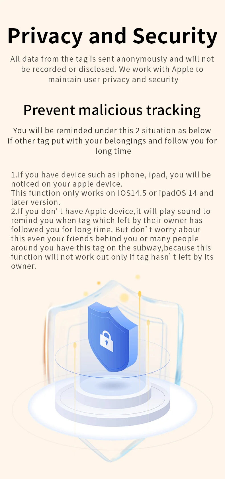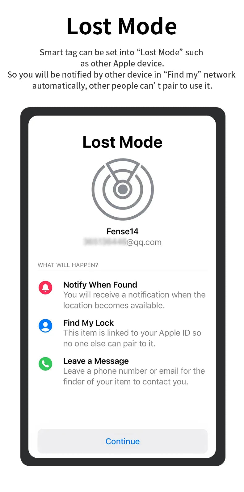 【Lost Mode Notifications】Activate Lost Mode through the Apple Find My app to leverage the vast network of Apple devices in locating your lost or stolen luggage or wallet. When another Apple device comes into contact with your tracking tag, you'll receive a notification with its updated location. This feature greatly increases the chances of recovering your belongings.