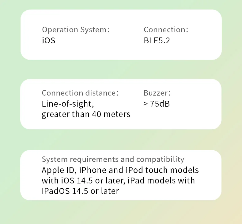 【Find Nearby with Built-in Speaker】The tracker tag includes a built-in speaker that allows you to easily locate your belongings within a Bluetooth range of up to 164 feet. Simply use the Find My app on your Apple device to trigger a sound alert from the card, guiding you directly to your item's location.