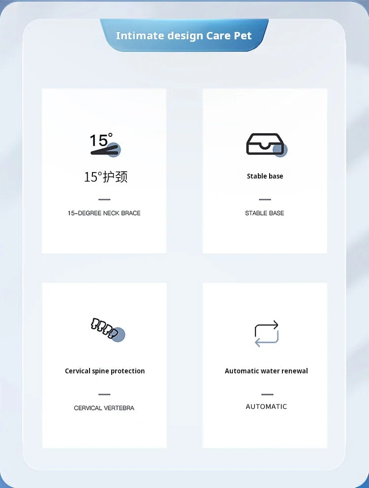 Pet Bowls With Water Feeder, 3 In 1 Ear Design Tilted Cat Water And Food Bowl Set With Gravity Water Bottle For Neck Protection