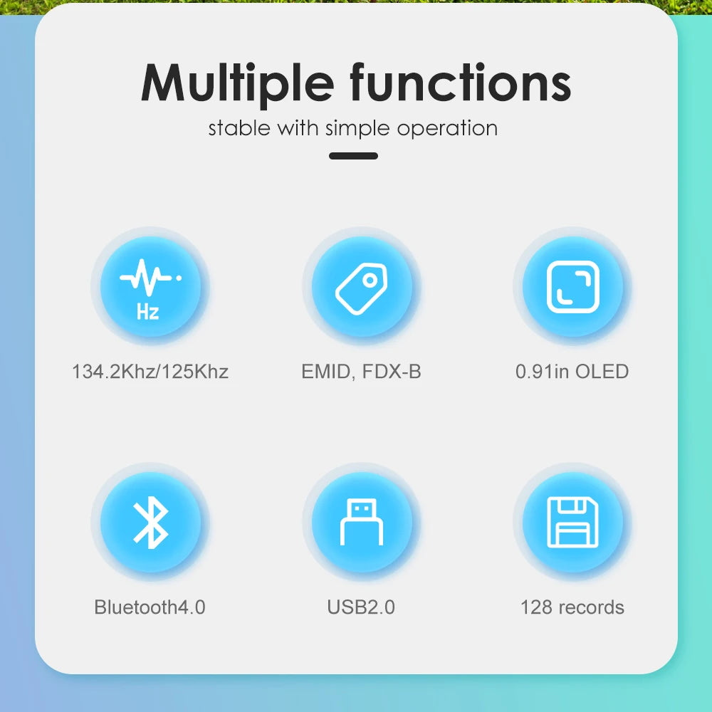 5. Support reading FDX-B (ISO11784 / 11785) and EMID microchips.