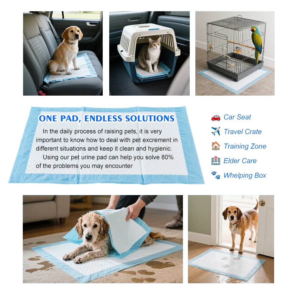 Adapt to all scenes such as family fixed-point excretion, vehicle protection, aviation box mats, postpartum care, sick pets lying in bed, etc., and the adhesive backing can be fixed to the seat/cage bottom to prevent displacement.