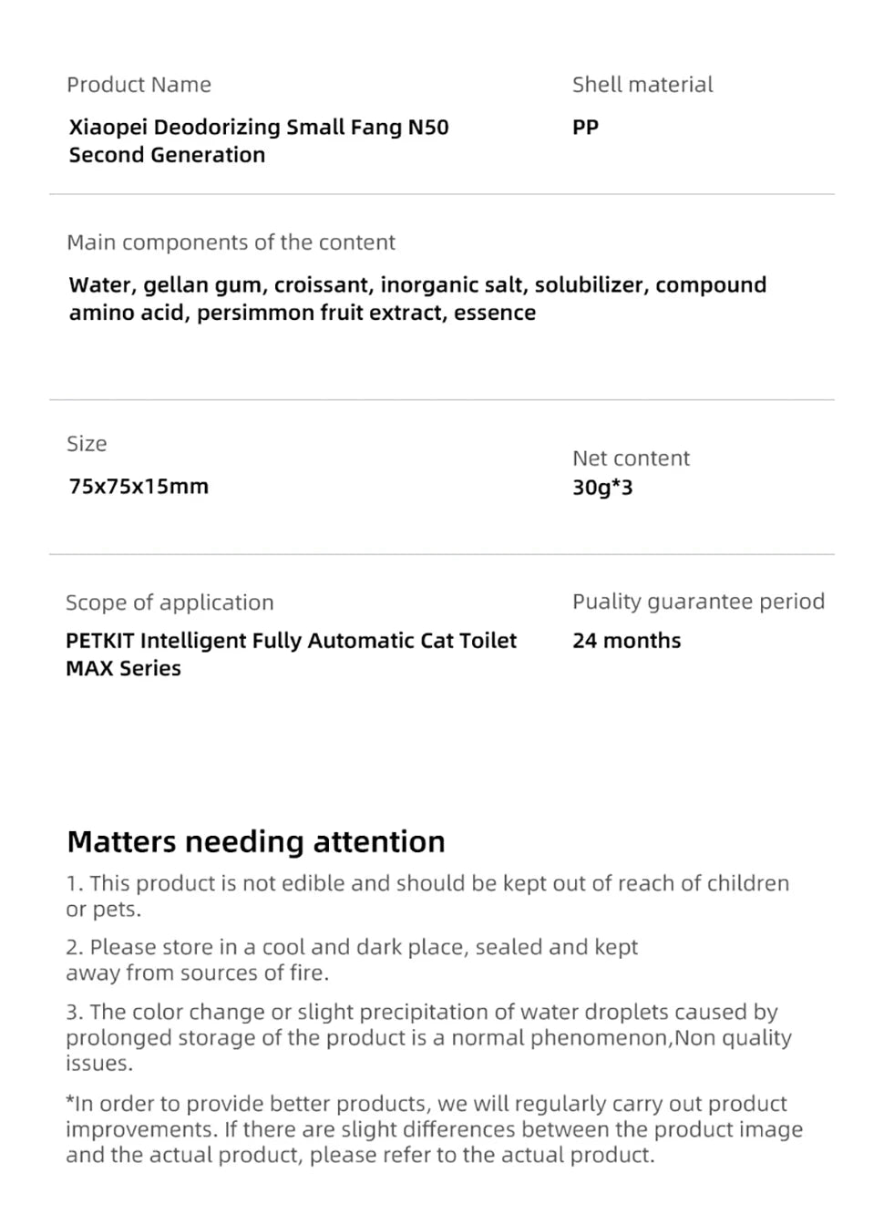 PETKIT N50 Second Deodorant cubes generation For PURA MAX cat litter box automatic Pet supplies Cats puramax2 parts deodorizer