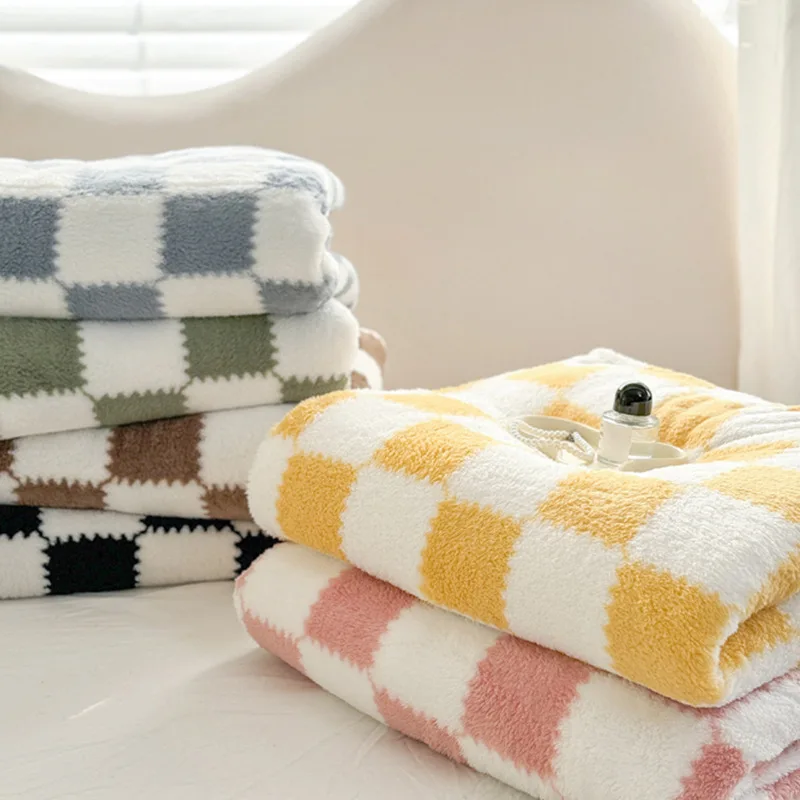 Super Soft Throw Blanket Premium Silky Flannel Fleece 3D Checkered Lightweight Bed Blanket All Season Use
